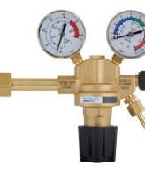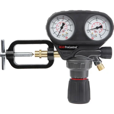 Reductor de presiune Dynaline Ar/CO2 pentru rețea, set complet. Setul include: suport, cot de 90 de grade, robinet cu bilă, racord de țeavă lipibil, piulițe de racord, capăt furtun. Carcasă din cupru. Presiune maximă de intrare: 20 bar. Interval de debit de ieșire: 0-22,5 l/min. Conexiune de ieșire: G1/4″.